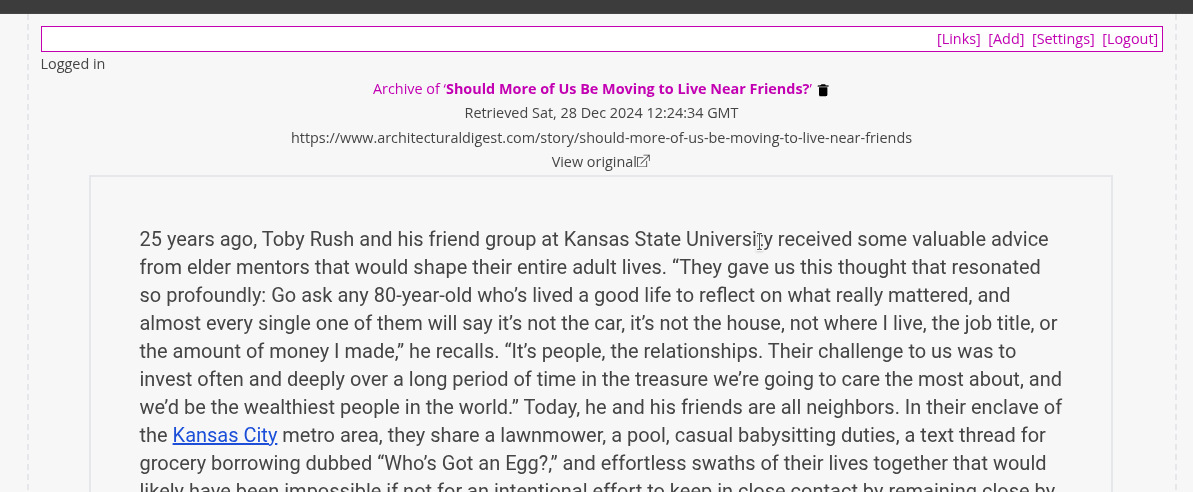 When you archive a website, the formatting is stripped away to present only the core content, much like the 'reader view' feature in modern browsers. Once archived, the content is accessible through LinkStash without requiring an internet connection or relying on the website's continued availability.